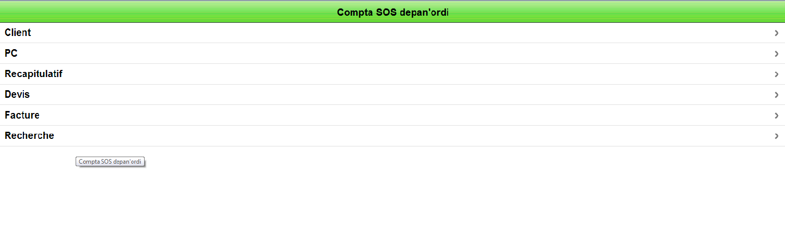 Mon premier stage s'est déroulé au sein de l'entreprise SOS Depan'ordi. Lors de celui-ci je fut charger de développer une application gérant la comptabilité ( Entré d'un nouveau client , Rédaction d'un devis, facture... ). Cette application se devait d'être portable et responsive (C'est a dire de s'adapter à son support.).